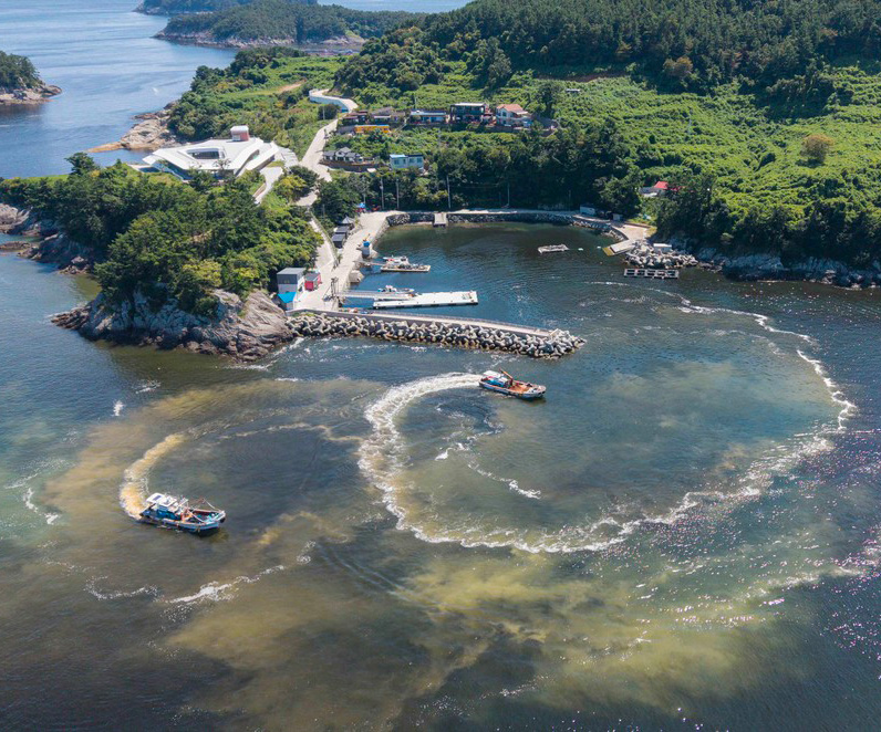 ๋จํด๊ตฐ ์ฐ์์์ ์ ๋ฐ๋ค์ด ์ ์กฐ์ ๋์์ ํฉํ ๋ฅผ ์ดํฌํ๋ ๋ชจ์ต์ ๋๋ค.